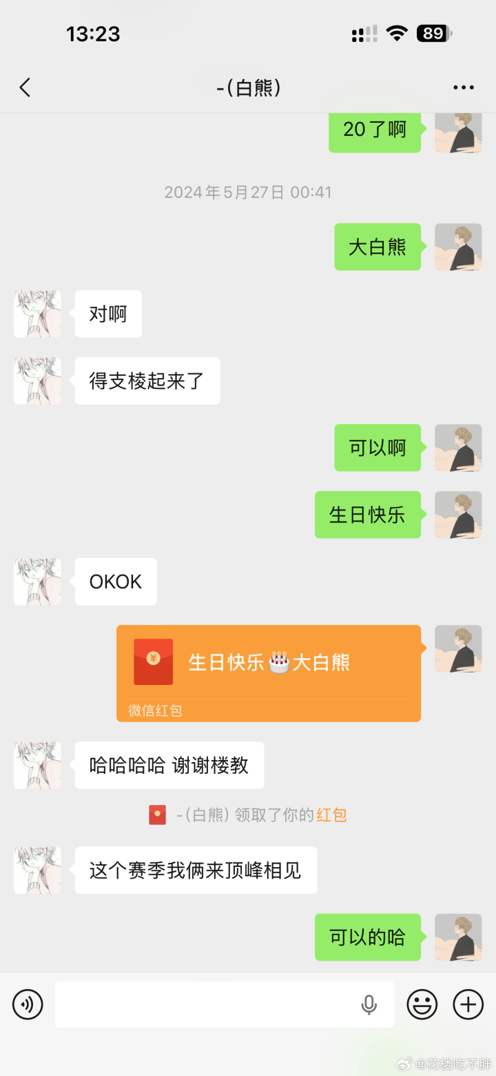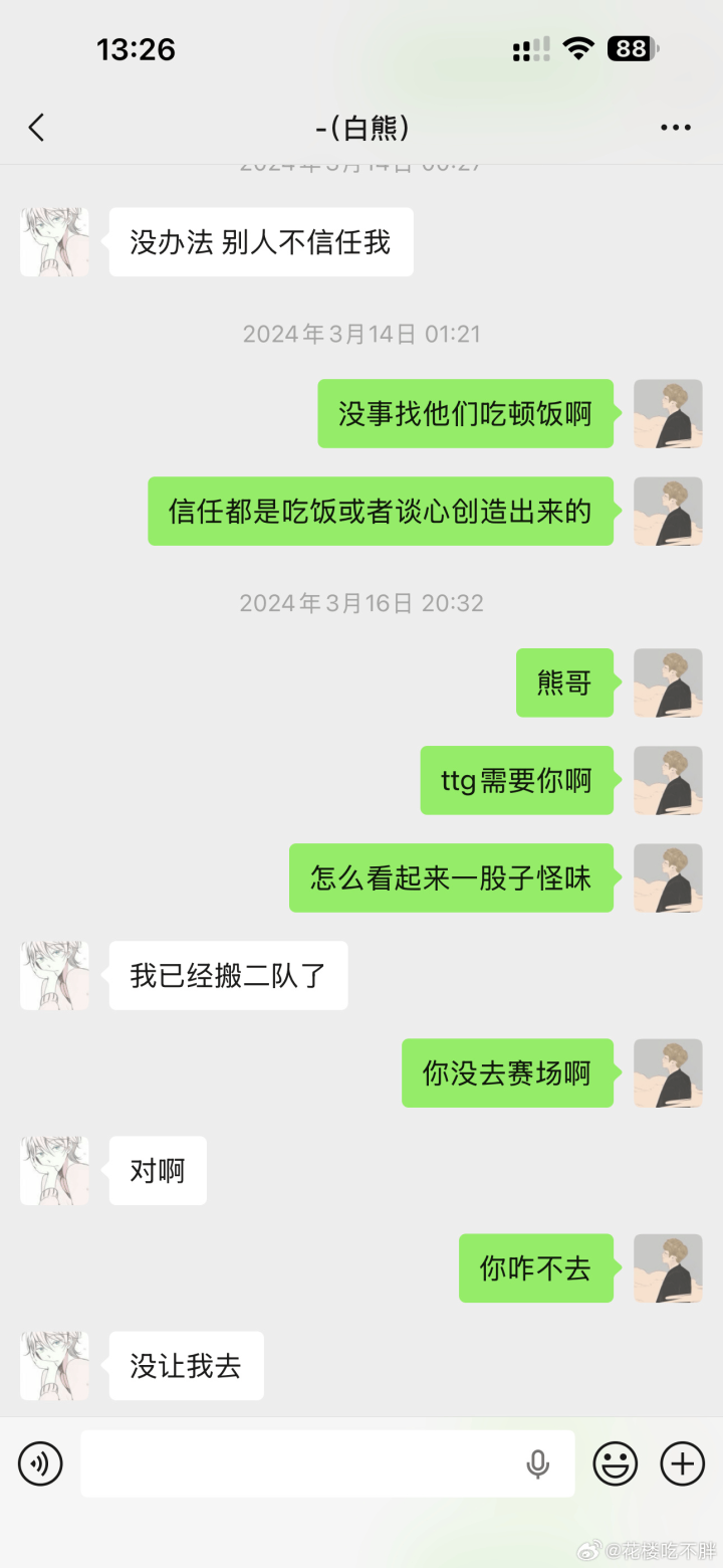 如果你觉得我只因为你在wb所以对你好,那你离开wb后我为什么还在你生日的时候给你发红包?为什么你在ttg低谷的时候我还要给你几次发消息鼓励支持你?