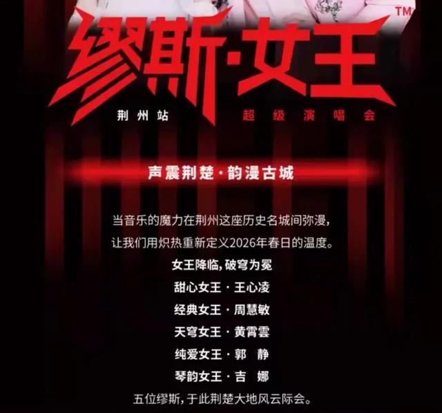 2026年荆州首场大型演唱会——缪斯女王超级演唱会荆州站,已经正式官宣。消息一出,瞬间点燃了无数荆州人的期待。这场由荆州市文化旅游投资发展集团有限公司联合主办的音乐盛宴,定档4月19日,地点选在了荆州·奥林匹克体育中心。