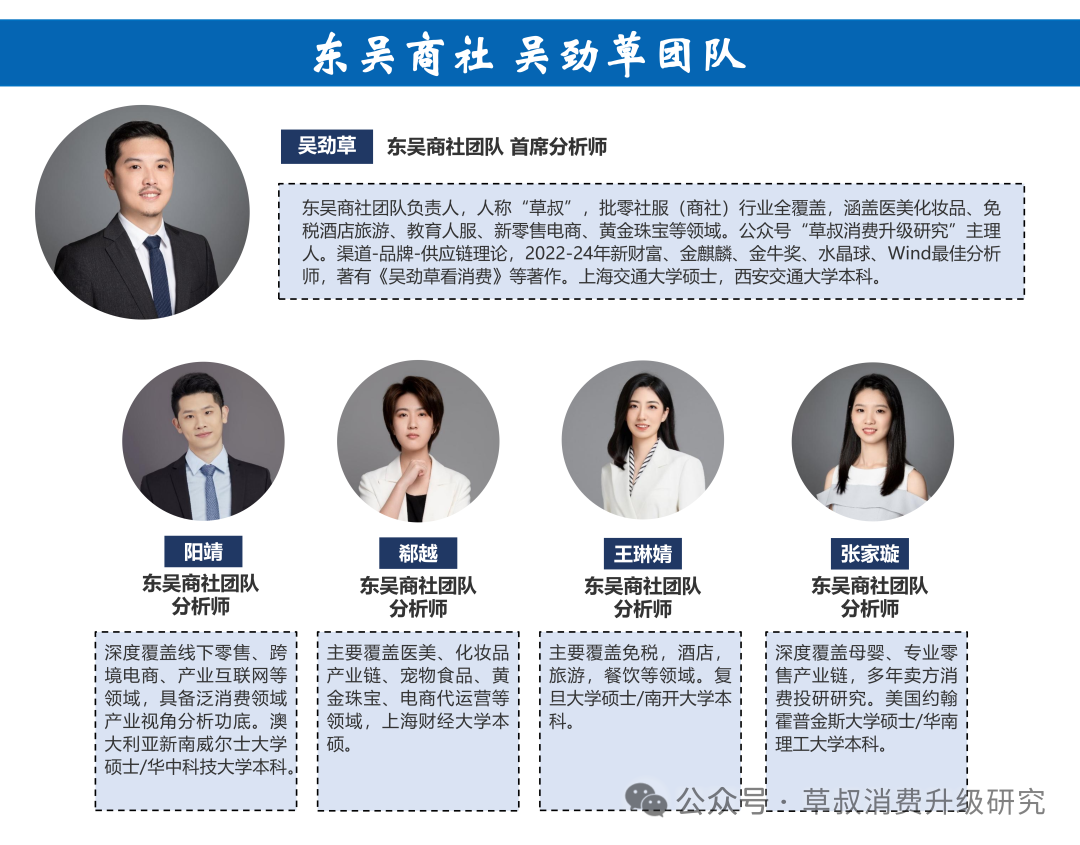 ——洞悉新消费,打造品牌&渠道&供应链研究新范式,化妆品,医美,免税,物流,电商,零售,教育,黄金珠宝,小家电,国牌崛起,产业互联网等消费领域深度研究。