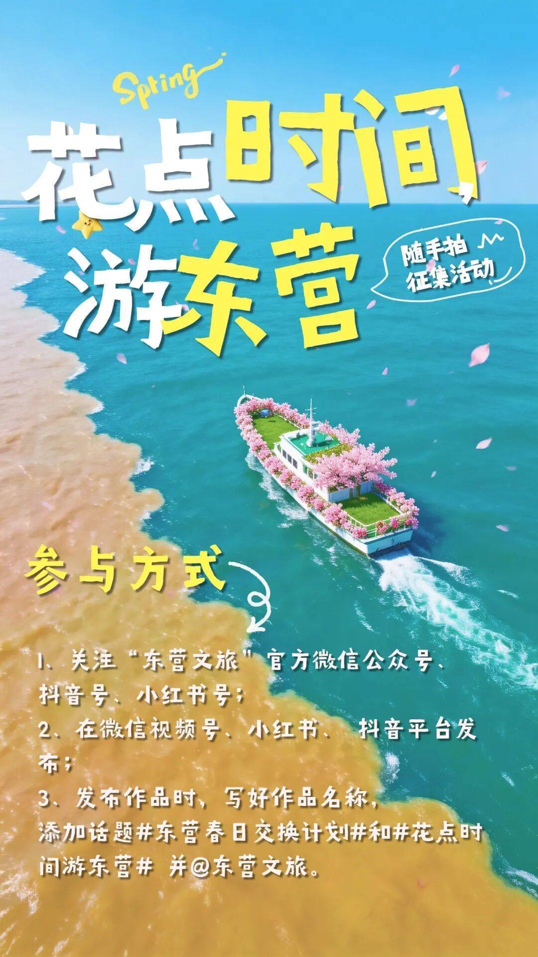 4.加话题#东营春日交换计划#和#花点时间游东营#